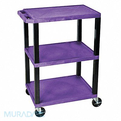 Utility Cart with Lipped Plastic Shelves Number of Shelves 3 Lip Style 4-Sided Lipped Load Capacity 300 lb Shelf Length 24 in Shelf Width 18 in Top Shelf Height 34 in Distance Between Shelves 9 1/2 in 16 1/2 in Distance Between Top and Middle Shelf 9 1/2 in Distance Between Middle and Bottom Shelf 16 1/2 in Handle Type Flat Handle Height 34 in Caster Brake Type Side Pedal Brake Caster Wheel/Tread Material Thermoplastic Rubber Caster Wheel Dia 4 in