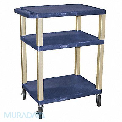 Flat Handle Utility Cart Number of Shelves 3 Load Capacity 300 lb Shelf Length 24 in Shelf Width 18 in Top Shelf Height 34 in Distance Between Shelves 34 in Distance Between Top and Middle Shelf 9 1/2 in Distance Between Middle and Bottom Shelf 16 1/2 in Handle Height 34 in Lip Height 1/4 in