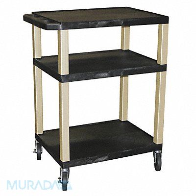 Flat Handle Utility Cart Number of Shelves 3 Load Capacity 300 lb Shelf Length 24 in Shelf Width 18 in Top Shelf Height 34 in Distance Between Shelves 34 in Distance Between Top and Middle Shelf 9 1/2 in Distance Between Middle and Bottom Shelf 16 1/2 in Handle Height 34 in Lip Height 1/4 in