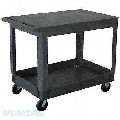 Utility Cart with Deep Lipped Flush Plastic Shelves Number of Shelves 2 Lip Style Combination Load Capacity 500 lb Shelf Length 37 in Shelf Width 25 5/8 in Top Shelf Height 33 in Distance Between Shelves 19 in Handle Type Flat Handle Height 33 in Caster Wheel/Tread Material Polypropylene