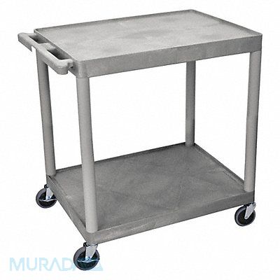 Utility Cart with Lipped Plastic Shelves Number of Shelves 2 Lip Style 4-Sided Lipped Load Capacity 400 lb Shelf Length 32 in Shelf Width 24 in Top Shelf Height 32 3/4 in Distance Between Shelves 24 3/4 in Handle Type Flat Handle Height 32 in Caster Brake Type Side Pedal Brake Caster Wheel/Tread Material Thermoplastic Rubber Caster Wheel Dia 4 in Caster/Wheel Configuration (2) Swivel (2) Swivel with Brake Cleanroom No Lip Height 1/4 in