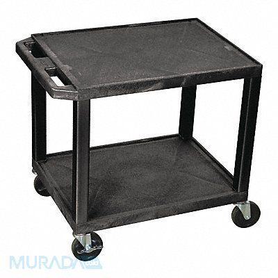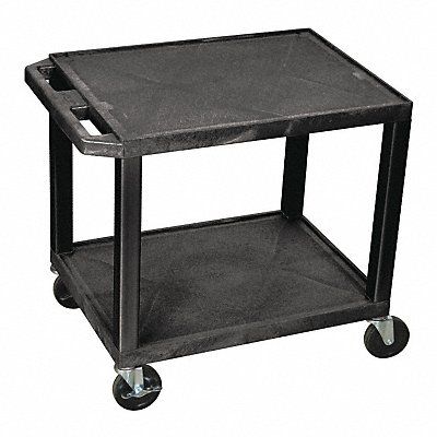 Utility Cart with Lipped Plastic Shelves Number of Shelves 2 Lip Style 4-Sided Lipped Load Capacity 200 lb Shelf Length 24 in Shelf Width 18 in Top Shelf Height 24 1/2 in Distance Between Shelves 20 1/2 in Handle Type Flat Handle Height 24 in Caster Brake Type Side Pedal Brake Caster Wheel/Tread Material Thermoplastic Rubber Caster Wheel Dia 4 in Caster/Wheel Configuration (2) Swivel (2) Swivel with Brake Cleanroom No Lip Height 1/4 in