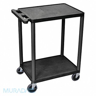 Utility Cart with Lipped Plastic Shelves Number of Shelves 2 Lip Style 4-Sided Lipped Load Capacity 300 lb Shelf Length 24 in Shelf Width 18 in Top Shelf Height 33 1/2 in Distance Between Shelves 26 in Handle Type Flat Handle Height 33 in Caster Brake Type Side Pedal Brake Caster Wheel/Tread Material Thermoplastic Rubber Caster Wheel Dia 4 in Caster/Wheel Configuration (2) Swivel (2) Swivel with Brake Cleanroom No Lip Height 1/4 in