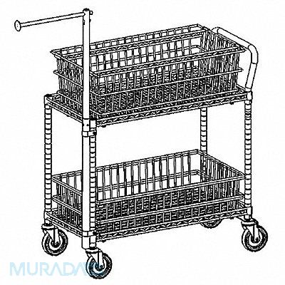 Utility Cart with High-Volume Removable Wire Basket Shelves Load Capacity 300 lb Number of Shelves 2 Shelf Width 18 in Shelf Length 41 in Material Steel Finish Chrome Caster Wheel Dia 5 in Color Silver Caster Brake Type No Brake Included Caster Wheel/Tread Material Polyurethane Caster/Wheel Configuration (2) Rigid (2) Swivel Handle Type (2) Raised Lip Style 4-Sided Lipped Collapsible No Overall Height 41 in Overall Length 36 in Overall Width 18 in