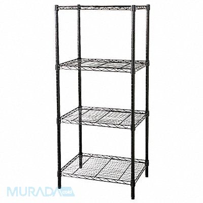 Wire Shelving Unit Adjustability Adjustable Black Color Powder Coated Includes (4) Posts (4) S Hooks Load Capacity per Shelf 300 lb Material Steel Overall Depth 18 in Overall Height 63 in Overall Width 60 in Dry Wet Recommended Environments Shelf Adjustment Increments 1 in Standards NSF 1 000 lb Shelf Configuration Starter Shelf Adjustment Type Split Sleeve Number of Shelves 4
