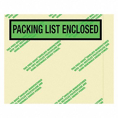 Packing List Envelope Packing List Type General Purpose Opening Location Side Loading Message Packing List Enclosed Outside Height 4 1/2 in Outside Length 5 1/2 in Color Green Message Location Top Package Quantity 1000
