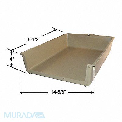 Compartment Drawer Insert Fits Box Depth 18 1/2 in Fits Box Height 4 in Fits Box Width 14 5/8 in Number of Dividers 0 Overall Depth 18 1/2 in Overall Height 4 in Overall Width 14 5/8 in Adjustable Dividers No Color Tan Finish Powder Coated Number of Compartments 1 Load Capacity 100 lb Material Plastic Product Type Compartmented Box Insert