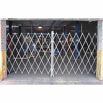Folding Gate Double Color Gray Opening Width 14 to 16 ft Folded Width 7 ft Folded Height 6 1/2 ft In Use Height 6 ft Material Steel Powder Coated Finish Universal Mounting Caster Type (2) Swivel Features 3/8 in x 3/4 in 16 ga Galvanized U Channels 1-1/2 in x 1-1/2 in 12 ga Angle Iron 3/16 in x 1/2 in Zinc Plated Rivets 5/8 in Center Web Drop Pin Includes (2) Bearing Washers (2) L-Brackets