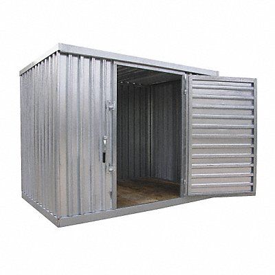 Outdoor Storage Shed Gray Door Opening Height 74 in Door Opening Width 45 in Nominal Exterior Depth 12.7 ft Nominal Exterior Width 9.1 ft Nominal Exterior Height 7.1 ft Wall Material Steel Roof Material Steel Storage Capacity 821.2 cu ft Includes Lock Yes Assembled Unassembled Interior Depth 12 3/8 ft Fire Rating Not Rated Lockable Yes Interior Height 6 1/2 ft Interior Width 8 7/8 ft Includes Floor Yes Hinged Number of Doors 1 Roof Design Straight