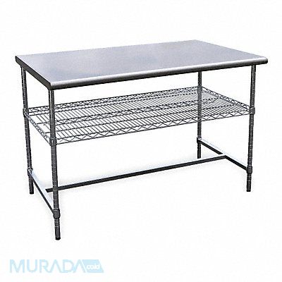 Work Table Height Adjustability Fixed Height Number of Shelves 1 Assembly Unassembled Back Stop Height Not Applicable Color Silver Edge Shape Square Features Lower Shelf is Adjustable Frame Material Stainless Steel Frame Material Finish Chrome Height Adjustment Increments Not Applicable Included Components Lower Shelf Includes (4) 33 in Posts (1) Chrome H-Frame Base and (1) Wire Shelf Maximum Adjustable Height Not Applicable Minimum Adjustable Height Not Applicable