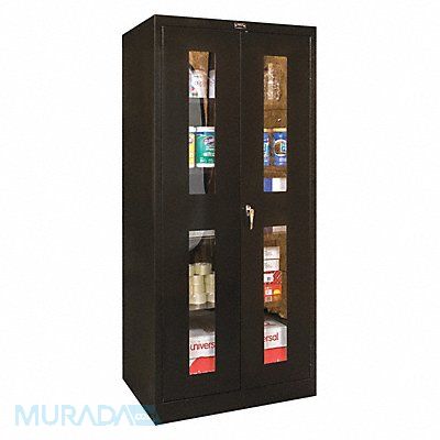 Storage Cabinet Base Type Frame Body Panel Type Solid Cabinet Color Black Cabinet Material Steel Cabinet Storage Components Shelves Door Handle Type Swing Door Type Clearview Duty Rating Light Duty For Use Indoors/Outdoors No Frame Assembled Unassembled Load Capacity per Shelf 150 lb Lock Type Keyed Mobility Stationary Mounting Location Freestanding Number of Shelves 4 Overall Depth 18 in Overall Height 72 in Overall Width 36 in Audit Trail Storage None