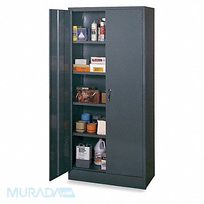 Storage Cabinet Base Type Frame Body Panel Type Solid Cabinet Color Gray Cabinet Material Steel Cabinet Storage Components Shelves Door Handle Type Swing Door Type Solid Duty Rating Light Duty Frame Assembled Unassembled Load Capacity per Shelf 175 lb Lock Type Keyed Mobility Stationary Number of Shelves 4 Overall Depth 24 in Overall Height 78 in Overall Width 36 in Audit Trail Storage None Cabinet Finish Powder Coated Number of Doors 2 Panel Material Thickness 24 ga