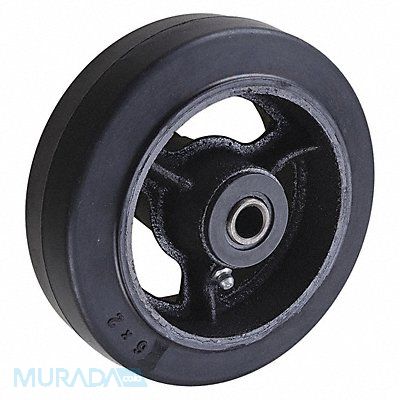 Rubber Tread on Iron Core Wheel 500 lb Load Rating 300 to 999 lb Load Rating Range 6 in Wheel Dia 2 in Wheel Width Rubber Wheel/Tread Material Soft 75 Shore A Roller Standard Tread Shape 1/2 in For Axle Size Not Included Includes Spanner Bushing Iron Wheel Core Material No Non-Marking 2 1/2 in Hub Length
