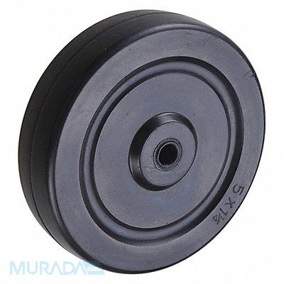 Solid Rubber Wheel 300 lb Load Rating 300 to 999 lb Load Rating Range 5 in Wheel Dia 1 1/4 in Wheel Width Rubber Wheel/Tread Material Hard 75 Shore D Plain Standard Tread Shape 3/8 in For Axle Size Not Included Includes Spanner Bushing Rubber Wheel Core Material No Non-Marking 1 1/2 in Hub Length