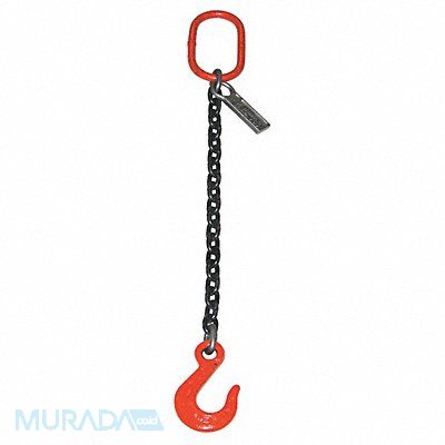 Chain Sling Grade 80 Number of Sling Legs 1 Chain Size 7/8 in Sling Capacity @ 90 Degrees 34 200 lb Sling Type Oblong Sling Hook Hook Opening 2 25/32 in Length of Sling Leg 10.8 ft Master Link/Bail Overall Height 13 1/2 in Master Link/Bail Opening Height 10 1/2 in Master Link/Bail Opening Width 5 1/4 in Color Black Orange Finish Chain Black Coating Fittings Powder-Coated Sling Length 12 ft Standards ASME B30.9 NACM OSHA 1910.184 Includes Chain Sling Safety Bulletin Rev 2.12