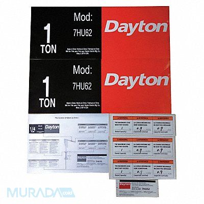 Jib Crane Label Kit Includes 1 Product Nameplate 1 Instruction 2 Capacity Labels and 3 Warning Labels For Use With Grainger Item Number 7HU62 Type Label For Use With Jib Crane