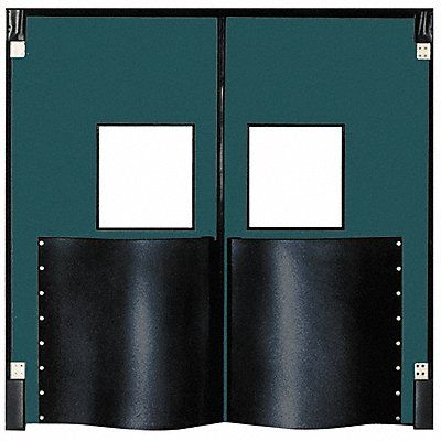 Swinging Door Door Height 8 ft Door Width 5 ft Door Color Forest Green Swinging Door Material Polyethylene Textured (Polyethylene Eggshell) Finish Door Thickness 1 7/8 in Number of Doors 2 Window Height 22 in Window Width 14 in Bumpers Included Yes Door Seals Included Yes Opening Height 8 ft Opening Width 5 ft Window Color Clear Window Material Polycarbonate Left and Right Jamb Insulation Value 10.83 Standards NSF and USDA Swinging Door Core Material Non-CFC Urethane Core