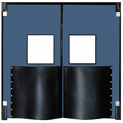 Swinging Door Door Height 8 ft Door Width 5 ft Door Color Cadet Blue Swinging Door Material Polyethylene Textured (Polyethylene Eggshell) Finish Door Thickness 1 7/8 in Number of Doors 2 Window Height 22 in Window Width 14 in Bumpers Included Yes Door Seals Included Yes Opening Height 8 ft Opening Width 5 ft Window Color Clear Window Material Polycarbonate Left and Right Jamb Insulation Value 10.83 Standards NSF and USDA Swinging Door Core Material Non-CFC Urethane Core