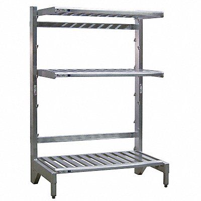 Cantilever Rack Load Capacity per Shelf 300 lb Aluminum Number of Shelves 3 Overall Depth 21 in Overall Height 72 in Overall Width 36 in Whole Unit Load Capacity 900 lb Shelving Configuration Standalone Shelf Style T-Bar Shelf Gauge 10 ga Shelf Length 18 in Shelf Lip Type No Lip Base Length 36 in Column Gauge 11 ga Number of Usable Sides 1