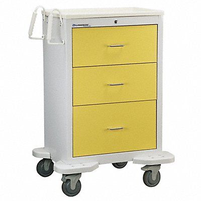 Medical Procedure Cart Assembled/Unassembled Assembled Material Steel Load Capacity 125 lb Caster Wheel Dia 5 in Caster Wheel/Tread Material Polyurethane Caster/Wheel Configuration (2) Swivel (2) Swivel with Brake Caster Brake Type Total Lock Brake Cabinet Color Gray Drawer Color Yellow Number of Drawers 3 Number of Shelves 1