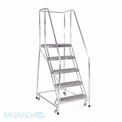 Rolling Ladder Material Aluminum Platform Height 50 in Handrails Included Yes Handrail Height 30 in Overall Height 80 in Number of Steps 5 Assembled Load Capacity 350 lb Step Tread Serrated Platform Depth 14 in Platform Width 16 in Bottom Width 22 in Base Depth 43 in Overall Width 22 in Climbing Angle 59 Degrees Step Depth 7 in Step Width 16 in Ladder Actuation Weight Activated Step Lock Finish Aluminum Acid Brightened Color Natural Standards ANSI OSHA