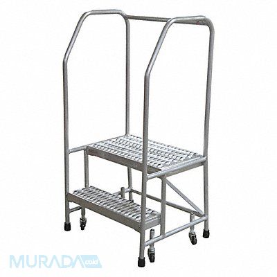 Rolling Ladder Material Aluminum Platform Height 20 in Handrails Included Yes Handrail Height 30 in Overall Height 50 in Number of Steps 2 Assembled Load Capacity 350 lb Step Tread Serrated Platform Depth 14 in Platform Width 24 in Bottom Width 26 in Base Depth 23 in Overall Width 26 in Climbing Angle 59 Degrees Step Depth 7 in Step Width 24 in Ladder Actuation Weight Activated Step Lock Finish Aluminum Acid Brightened Color Natural Standards ANSI OSHA