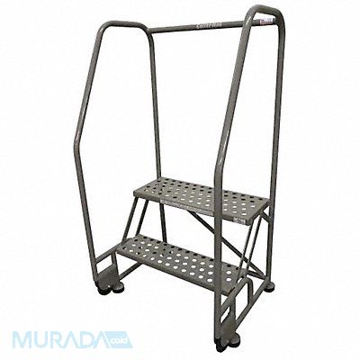 Tilt and Roll Ladder Material Steel Platform Height 20 in Handrails Included Yes Handrail Height 30 in Overall Height 50 in Number of Steps 2 Assembled Load Capacity 450 lb Step Tread Perforated Platform Depth 10 in Platform Width 24 in Bottom Width 28 in Base Depth 24 in Overall Width 28 in Climbing Angle 59 Degrees Step Depth 7 in Step Width 24 in Ladder Actuation None Finish Powder Coated Color Gray Standards ANSI OSHA Includes 2-1/2 in Rubber Pads Rear Exit No