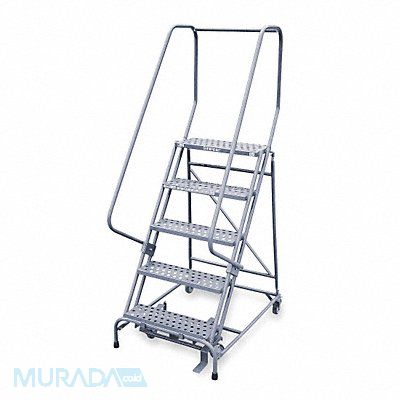 Rolling Ladder Material Steel Platform Height 50 in Handrails Included Yes Handrail Height 30 in Overall Height 80 in Number of Steps 5 Unassembled Load Capacity 450 lb Step Tread Perforated Platform Depth 10 in Platform Width 24 in Bottom Width 30 in Base Depth 40 in Overall Width 30 in Climbing Angle 59 Degrees Step Depth 7 in Step Width 24 in Ladder Actuation Foot Activated Step Lock Finish Powder Coated Color Gray Standards ANSI OSHA Rear Exit No