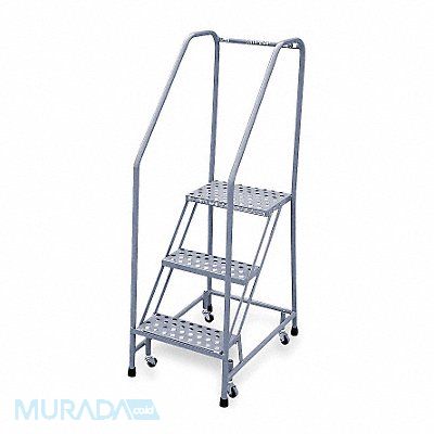 Rolling Ladder Material Steel Platform Height 30 in Handrails Included Yes Handrail Height 30 in Overall Height 60 in Number of Steps 3 Assembled Load Capacity 450 lb Step Tread Perforated Platform Depth 12 in Platform Width 16 in Bottom Width 20 in Base Depth 32 in Overall Width 20 in Climbing Angle 50 Degrees Step Depth 7 in Step Width 16 in Ladder Actuation Weight Activated Step Lock Finish Powder Coated Color Gray Standards ANSI OSHA Rear Exit No