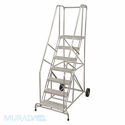 Wheelbarrow Ladder Material Aluminum Platform Height 50 in Handrails Included Yes Handrail Height 30 in Overall Height 80 in Number of Steps 5 Assembled Load Capacity 350 lb Step Tread Ribbed Platform Depth 14 in Platform Width 24 in Bottom Width 36 in Base Depth 47 in Overall Width 36 in Climbing Angle 59 Degrees Step Depth 7 in Step Width 24 in Ladder Actuation None Finish Aluminum Acid Brightened Color Silver Standards ANSI OSHA Includes Ladder Instructions