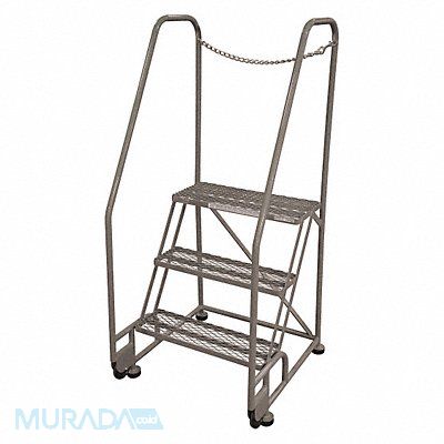 Tilt and Roll Ladder Material Steel Platform Height 30 in Handrails Included Yes Handrail Height 30 in Overall Height 60 in Number of Steps 3 Assembled Load Capacity 450 lb Step Tread Expanded Metal Platform Depth 10 in Platform Width 16 in Bottom Width 20 in Base Depth 31 in Overall Width 20 in Climbing Angle 59 Degrees Step Depth 7 in Step Width 16 in Ladder Actuation None Finish Powder Coated Color Gray Standards ANSI OSHA Includes Removable Rear Chain Rear Exit Yes