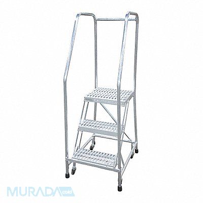 Rolling Ladder Material Aluminum Platform Height 20 in Handrails Included Yes Handrail Height 30 in Overall Height 50 in Number of Steps 2 Assembled Load Capacity 350 lb Step Tread Serrated Platform Depth 14 in Platform Width 16 in Bottom Width 18 in Base Depth 23 in Overall Width 18 in Climbing Angle 59 Degrees Step Depth 7 in Step Width 16 in Ladder Actuation Weight Activated Step Lock Finish Aluminum Acid Brightened Color Natural Standards ANSI OSHA Rear Exit No