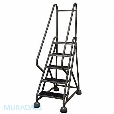 D5267 Rolling Ladder Material Steel Platform Height 45 in Handrails Included Yes Handrail Height 30 in Overall Height 75 in Number of Steps 5 Unassembled Load Capacity 450 lb Step Tread Antislip Vinyl Platform Depth 14 in Platform Width 16 in Bottom Width 26 in Base Depth 46 in Overall Width 26 in Climbing Angle 59 Degrees Step Depth 8 in Step Width 16 in Ladder Actuation Weight Activated Step Lock Finish Powder Coated Color Gray Standards ANSI OSHA Includes Double Handrails