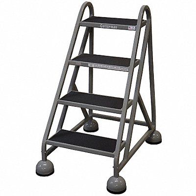 F2129 Rolling Ladder Material Steel Platform Height 36 in Handrails Included No Overall Height 40 in Number of Steps 4 Assembled Load Capacity 450 lb Step Tread Antislip Vinyl Platform Depth 8 in Platform Width 16 in Bottom Width 25 in Base Depth 34 in Overall Width 25 in Climbing Angle 59 Degrees Step Depth 8 in Step Width 16 in Ladder Actuation Weight Activated Step Lock Finish Powder Coated Color Gray Standards ANSI OSHA Rear Exit No