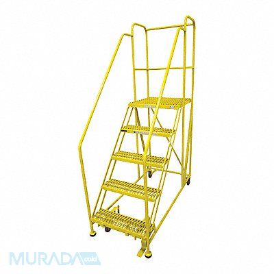 Single Access Rolling Platform Material Steel Platform Style Single Access Platform Height 50 in Load Capacity 800 lb Number of Modular Decks 0 Base Depth 58 in Bottom Width 28 in Platform Depth 24 in Platform Width 24 in Overall Height 7 ft 2 in Handrail Height 36 in Number of Guard Rails 0 Number of Legs 2 Number of Steps 5 Step Width 24 in Step Depth 7 in Climbing Angle 50 Degrees Step Tread Serrated Color Yellow Finish Powder Coated Standards OSHA 1910.29 and ANSI A14.7