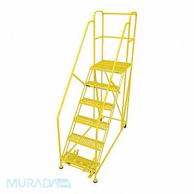 Single Access Rolling Platform Material Steel Platform Style Single Access Platform Height 60 in Load Capacity 800 lb Number of Modular Decks 0 Base Depth 78 in Bottom Width 40 in Platform Depth 36 in Platform Width 36 in Overall Height 8 ft Handrail Height 36 in Number of Guard Rails 0 Number of Legs 2 Number of Steps 6 Step Width 36 in Step Depth 7 in Climbing Angle 50 Degrees Step Tread Serrated Color Yellow Finish Powder Coated Standards OSHA 1910.29 and ANSI A14.7