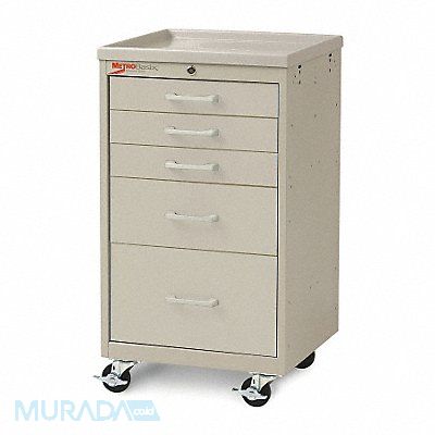 Compact General Medical Supply Cart with Drawers Assembled/Unassembled Assembled Material Polymer Steel Load Capacity 175 lb Caster Wheel Dia 3 in Caster/Wheel Configuration (2) Swivel (2) Swivel with Brake Caster Brake Type Side Pedal Brake Cabinet Color Taupe Drawer Color White Number of Drawers 5 Number of Shelves 1 Shelf Length 19 7/8 in Shelf Width 17 3/4 in