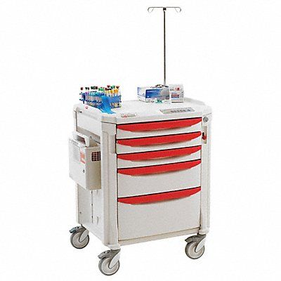 Medical Procedure Cart Assembled/Unassembled Assembled Material Polyethylene Caster Wheel Dia 5 in Caster Wheel/Tread Material Polyurethane Caster/Wheel Configuration (2) Swivel (2) Swivel with Brake Caster Brake Type Total Lock Brake Cabinet Color Taupe Drawer Color White Number of Drawers 5 Number of Shelves 1