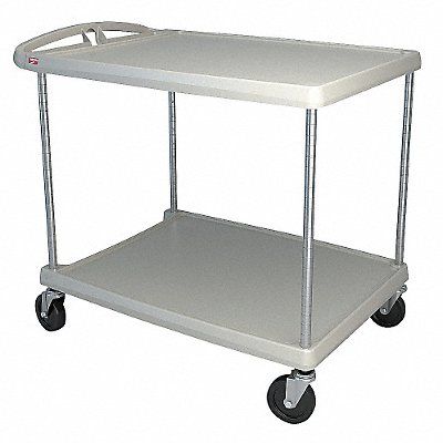 Utility Cart with Lipped Plastic Shelves Number of Shelves 2 Lip Style 4-Sided Lipped Load Capacity 400 lb Shelf Length 37 in Shelf Width 27 5/8 in Top Shelf Height 36 5/8 in Distance Between Shelves 24 in Handle Type Flat Handle Height 35 1/2 in Caster Wheel/Tread Material Rubber Caster Wheel Dia 5 in Caster/Wheel Configuration (4) Swivel Lip Height 3/8 in