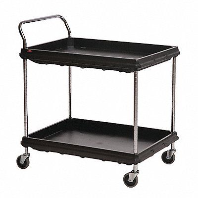Utility Cart with Deep Lipped Plastic Shelves Number of Shelves 2 Lip Style 4-Sided Lipped Load Capacity 400 lb Shelf Length 39 1/2 in Shelf Width 27 in Top Shelf Height 33 1/4 in Distance Between Shelves 24 in Handle Type Raised Handle Height 35 1/2 in Caster Brake Type No Brake Included Caster Wheel/Tread Material Thermoplastic Rubber Caster Wheel Dia 4 in Caster/Wheel Configuration (4) Swivel Lip Height 2 3/4 in