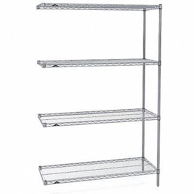 Wire Shelving Unit Adjustability Adjustable Silver Color Chrome Includes (2) Posts (8) S Hooks Load Capacity per Shelf 500 lb Material Stainless Steel Overall Depth 24 in Overall Height 63 in Overall Width 72 in Dry Recommended Environments Shelf Adjustment Increments 1 in 2 000 lb Shelf Configuration Add-On Shelf Adjustment Type Split Sleeve Number of Shelves 4