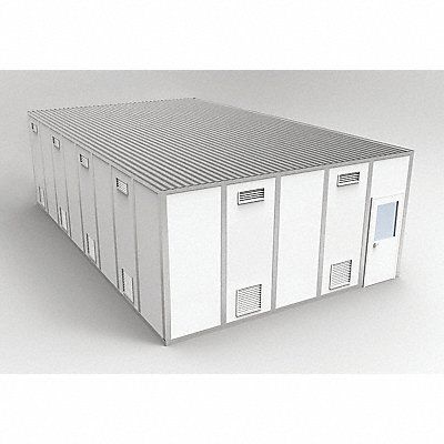 Cleanroom Modular In-Plant Office Unassembled 4-Wall Depth 20 ft 4-1/2 in Width Size 32 ft 4-1/2 in Height 10 ft 10 Lights 10 Outlets Class A Fire Rating R11 Insulation Color White Steel Covered Drywall Frame Color Silver Hardboard Length 1/2 in Sound Transmission Coefficient STC 31 ASTM-E84 ISO 14644-1 Cleanroom Class 8 Standards