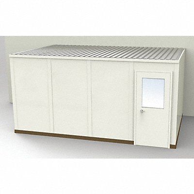 Modular In-Plant Office 3-Wall Unassembled Depth 10 ft 1 1/4 in Width 16 ft 4 1/2 in Height 8 ft 1 3/4 in 2 Lights 3 Outlets Class A Fire Rating R-11 Insulation Color Beige Panel Material Steel Frame Color Beige Steel Sound Transmission Coefficient STC 31 Includes Roof Deck
