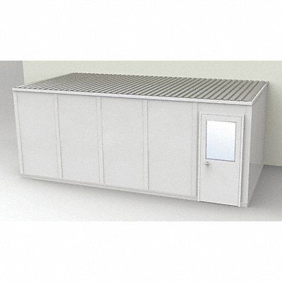 Modular In-Plant Office 3-Wall Unassembled Depth 10 ft 1 1/4 in Width 20 ft 4 1/2 in Height 8 ft 1 3/4 in 3 Lights 4 Outlets Class A Fire Rating R-11 Insulation Color Gray Panel Material Vinyl Frame Color Gray Steel Sound Transmission Coefficient STC 31 Includes Roof Deck