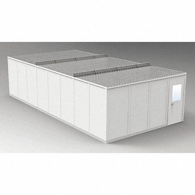 Modular In-Plant Office 4-Wall Unassembled Depth 16 ft 4 1/2 in Width 32 ft 4 1/2 in Height 8 ft 1 3/4 in 7 Lights 12 Outlets Class A Fire Rating R-11 Insulation Color Gray Panel Material Vinyl Frame Color Gray Steel Sound Transmission Coefficient STC 31 Includes Roof Deck