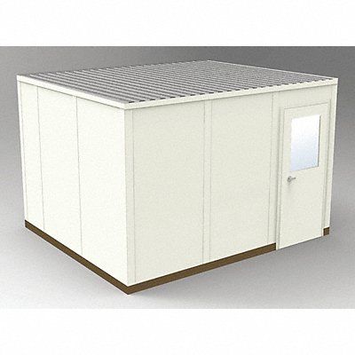 Modular In-Plant Office 4-Wall Unassembled Depth 10 ft 4 1/2 in Width 12 ft 4 1/2 in Height 8 ft 1 3/4 in 2 Lights 3 Outlets Class A Fire Rating R-11 Insulation Color Beige Panel Material Steel Frame Color Beige Steel Sound Transmission Coefficient STC 31 Includes Roof Deck