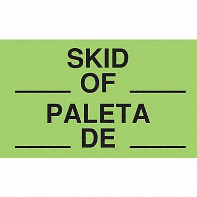 Instructional Handling Label Language Bilingual Primary Label Subject Receiving Message Header Inspection Message Skid__ Of__/Paleta De Label Width 5 in Label Height 3 in Material Adhesive Back Paper Background Color Green Labels per Roll 500 Package Quantity 500