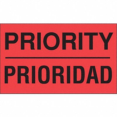 Instructional Handling Label Language Bilingual Primary Label Subject Receiving Message Header Inspection Message Priority/Prioridad Label Width 5 in Label Height 3 in Material Adhesive Back Paper Background Color Red Labels per Roll 500 Package Quantity 500