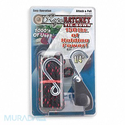 Rope Ratchet End Type Hook Length 8 ft Diameter 1/4 in Body Material Polypropylene Hardware Material Steel Color Black Includes Rope Working Load Limit 150 lb