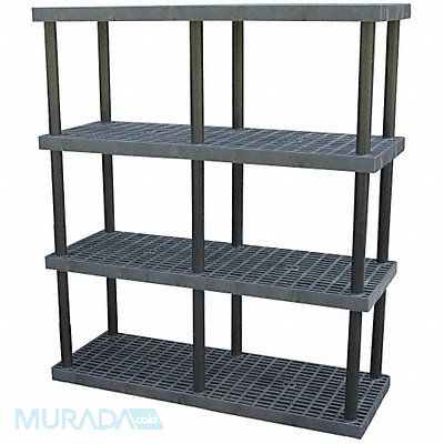 Plastic Shelving Assembled Unassembled Adjustability Fixed Color Black Frame Material Plastic Finish Unfinished Overall Depth 24 in Overall Height 75 in Overall Width 66 in Shelf Style Ventilated Shelving Material High Density Polyethylene Commercial Shelving Strength Rating Whole Unit Load Capacity 680 lb Number of Shelves 4 Load Capacity per Shelf 1 850 lb Includes (18) Leg Connectors (18) Posts Corrosion-Resistant Resistance Properties